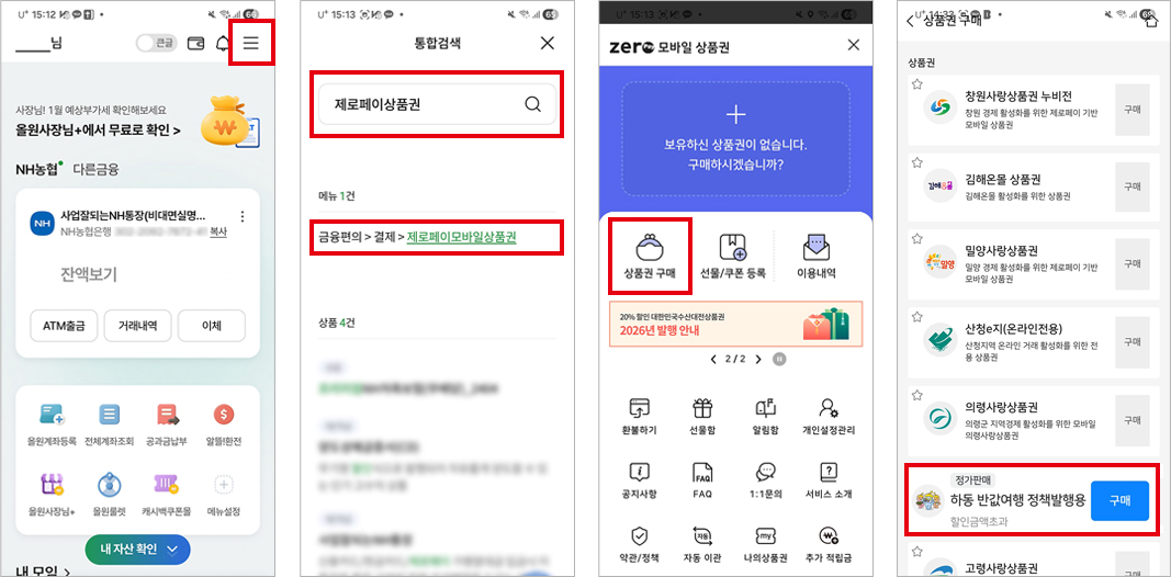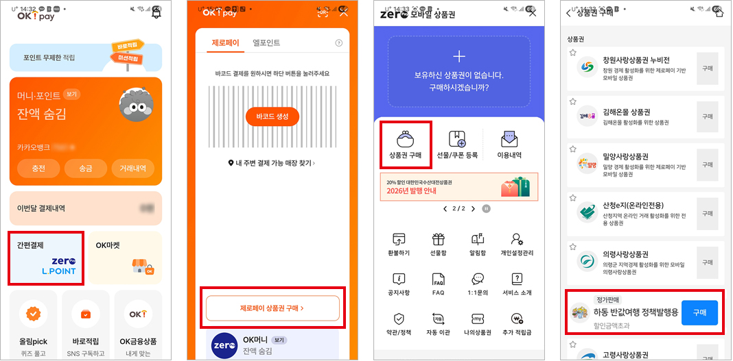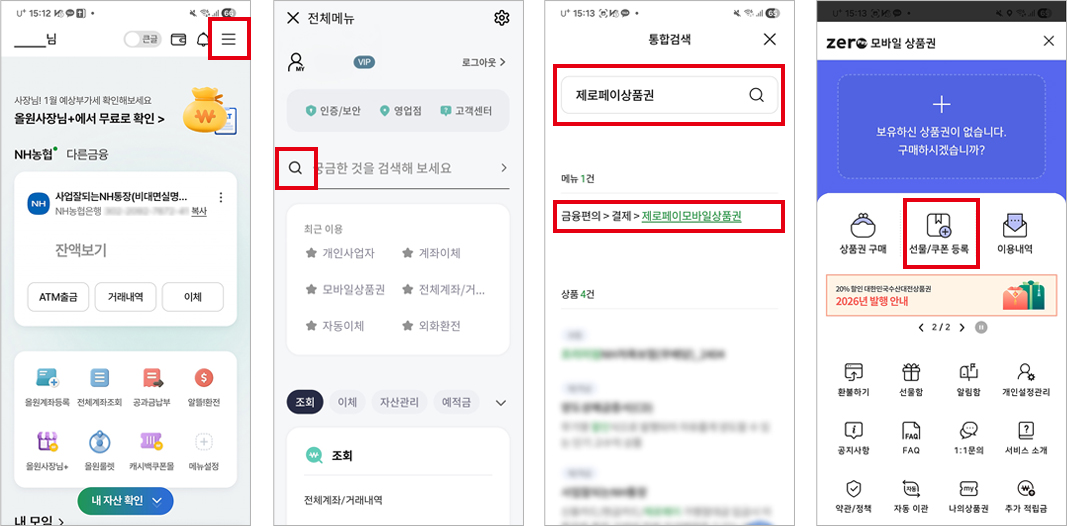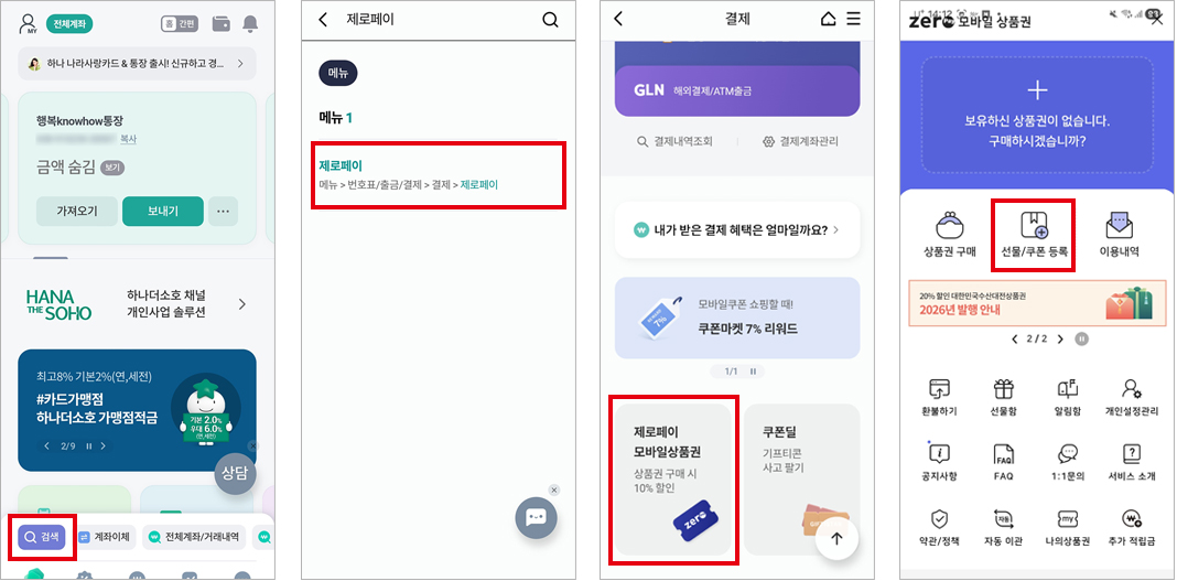 - 2. 메뉴에서 제로페이상품권 검색